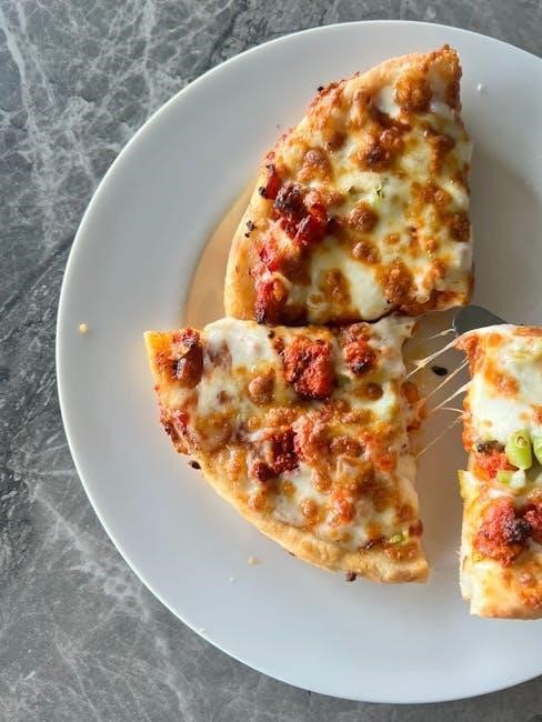The cheese should be fully melted and bubbly‚ potentially with slight browning in spots. Gently test one bite with a fork; it should offer a slight resistance‚ confirming it’s heated through.